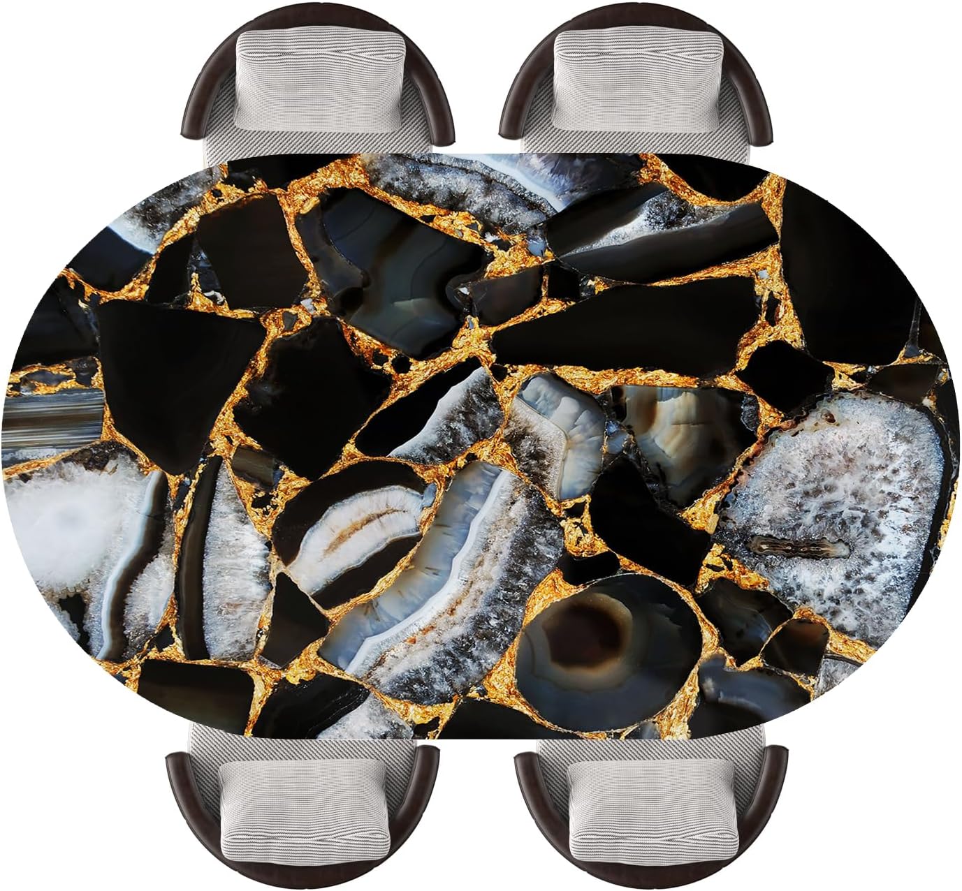 CYAHSJE oval fitted tablecloth waterproof wrinkle resistant elastic edge table cloths for kitchen dining party holiday buffet